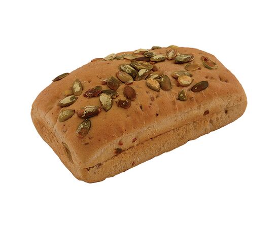 борошно пшеничне, вода питна, суміш зернова (5, 9%) (висівки пшеничні, борошно (житнє, соєве), насіння соняшника, соя плющена, кунжут, насіння льону, сироватка молочна суха, барвник Е150а, поліпшувач борошна (антиспікаючий агент Е170, борошно пшеничне, ензими), ліофілізовані чисті культури молочнокислих бактерій), кунжут, закваска (суха пшенична закваска, дріжджі хлібопекарські, антиокислювач аскорбінова кислота Е300, ферменти), сіль харчова. Може містити сліди кунжуту, молочного білку, продуктів переробки молюсків.