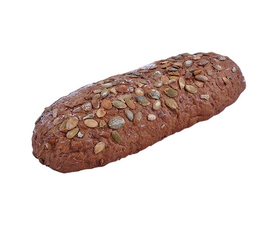борошно пшеничне, вода питна, суміш зернова (висівки пшеничні, борошно (житнє, соєве), насіння соняшника, соя плющена, кунжут, насіння льону, сироватка молочна суха, барвник Е150а, поліпшувач борошна (антиспікаючий агент Е170, борошно пшеничне, ензими), ліофілізовані чисті культури молочнокислих бактерій), ядро насіння гарбуза, ядро насіння гарбуза, насіння соняшника, борошно житнє, дріжджі хлібопекарські, цукор, сіль харчова, глютен пшеничний, суміш хлібопекарська (борошно пшеничне, солод пшеничне, глютен пшеничний, цукор), закваска (борошно житнє підсмажене, вода питна, чисті культури молочнокислих бактерій). Може містити сліди кунжуту, молочного білку, продуктів переробки молюсків.